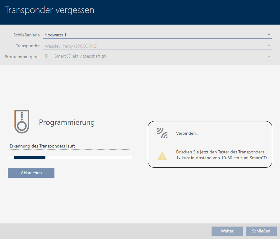 Medewerkers die hun identificatiemedium vergeten zijn, kunnen een kopie met afloopdatum ontvangen. Het resetten of wissen vervalt in dit geval, omdat geen onbevoegde toegang tot het vergeten identificatiemedium heeft.