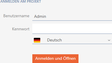 Bij de eerste opstart ziet u een speciaal venster waarin u uw eerste project kunt inrichten. Daarna verschijnt het normale inlogvenster: