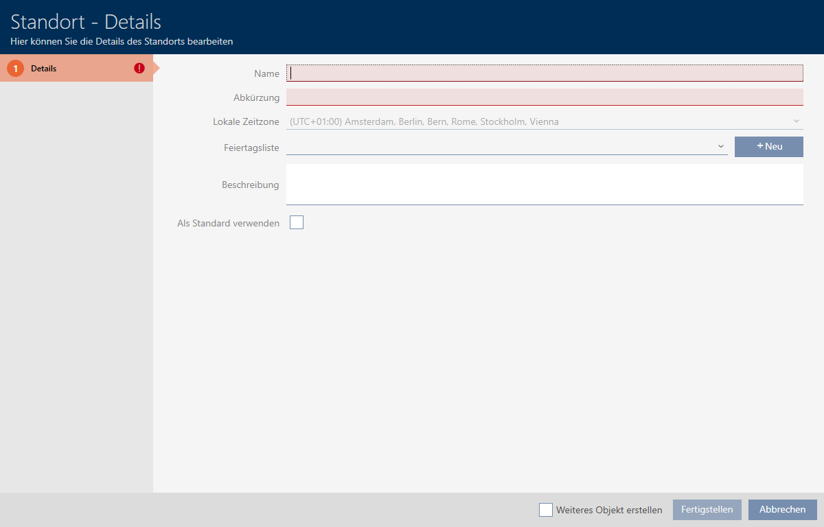 In de database moet minstens één locatie beschikbaar zijn. De AXM Plus maakt daarom een standaard locatie voor u aan.