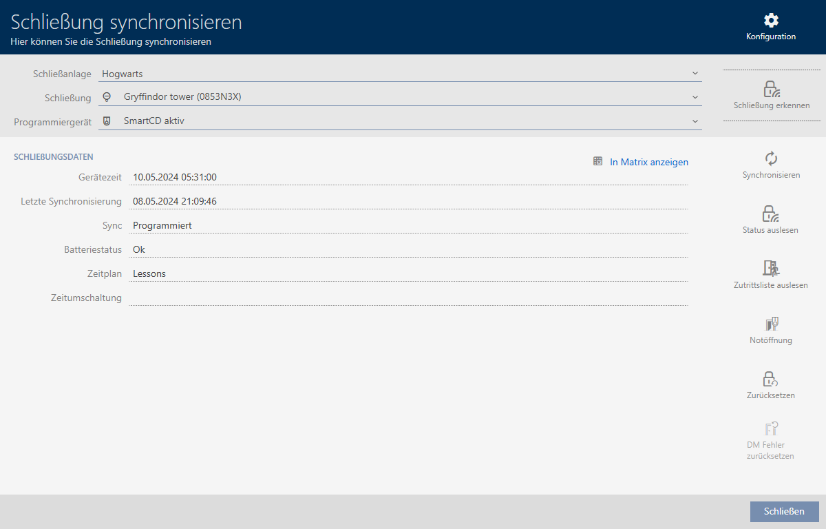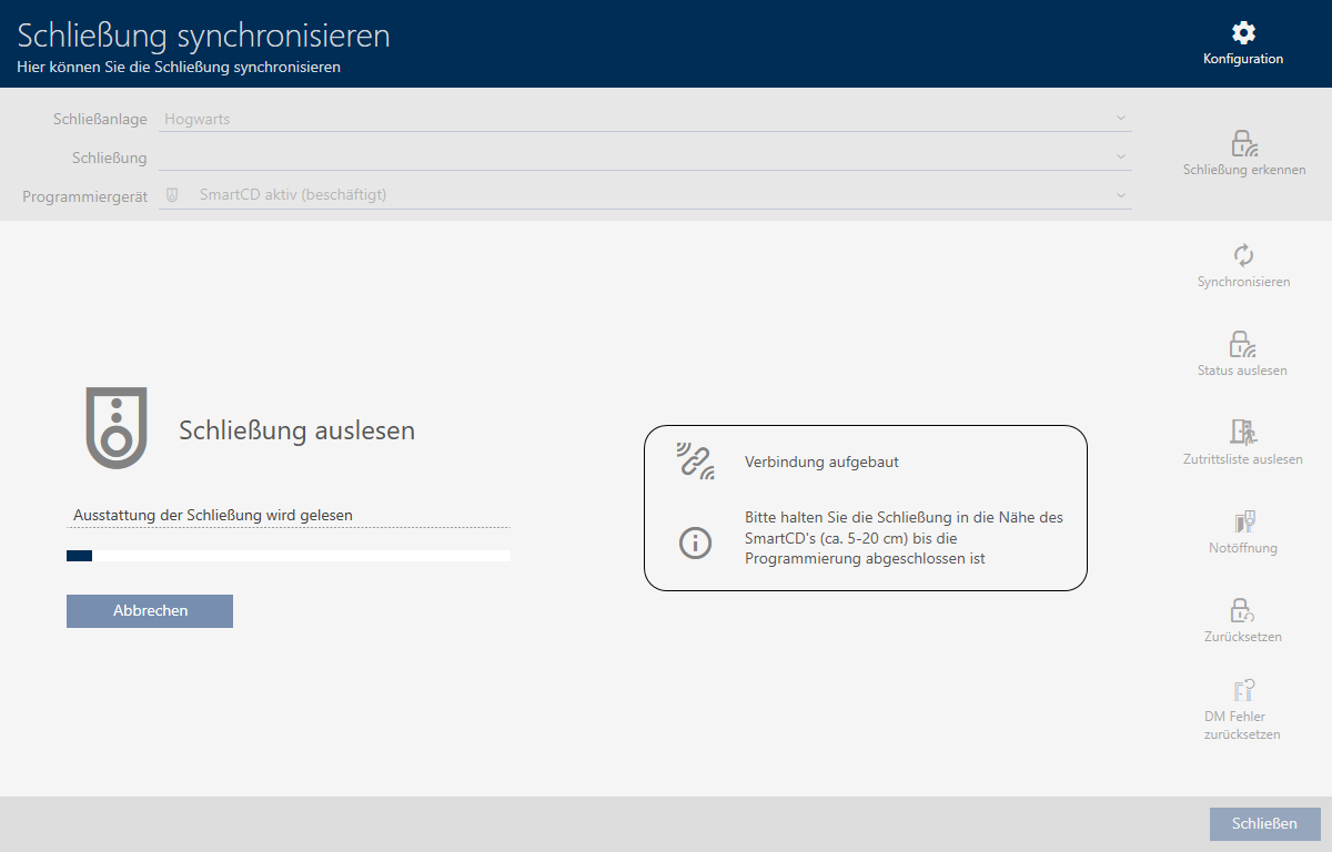U kunt het sluitelement nu bijvoorbeeld resetten (zie Sluitelement resetten).