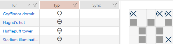 - In het venster kunt u met behulp van de kolom Zone – Details controleren of een sluitelement al aan een zone is toegewezen.