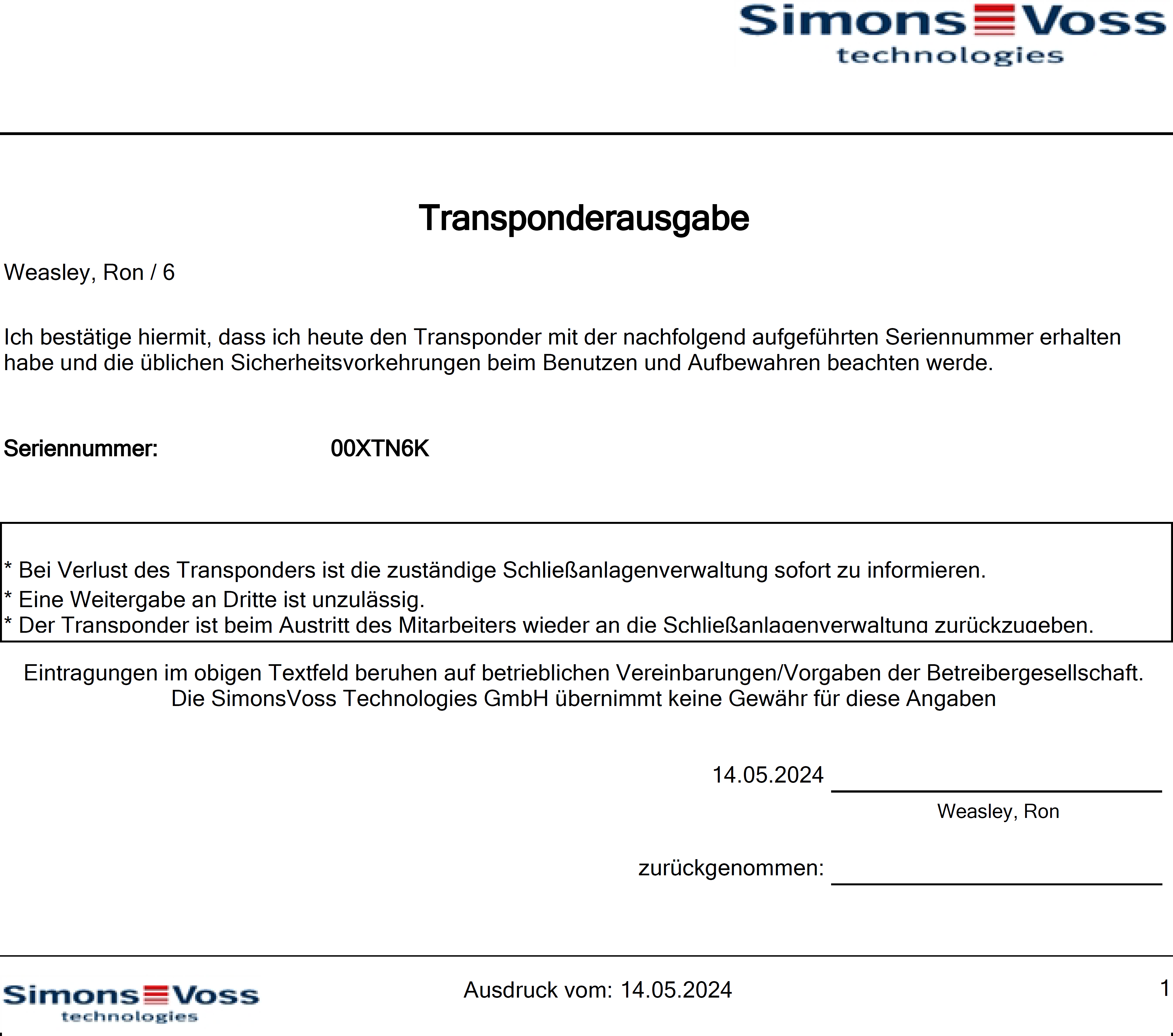 Als exploitant van een sluitsysteem kunt u dus de TID vasthouden en uzelf beveiligen. In het rapport zijn hiervoor handtekeningvelden voorzien.