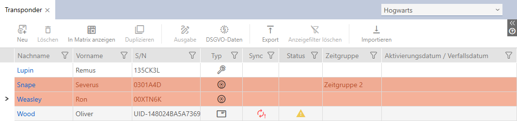 - Vervang indien nodig in het dropdownmenu rechtsboven bij het sluitsysteem dat het gewenste identificatiemedium bevat.