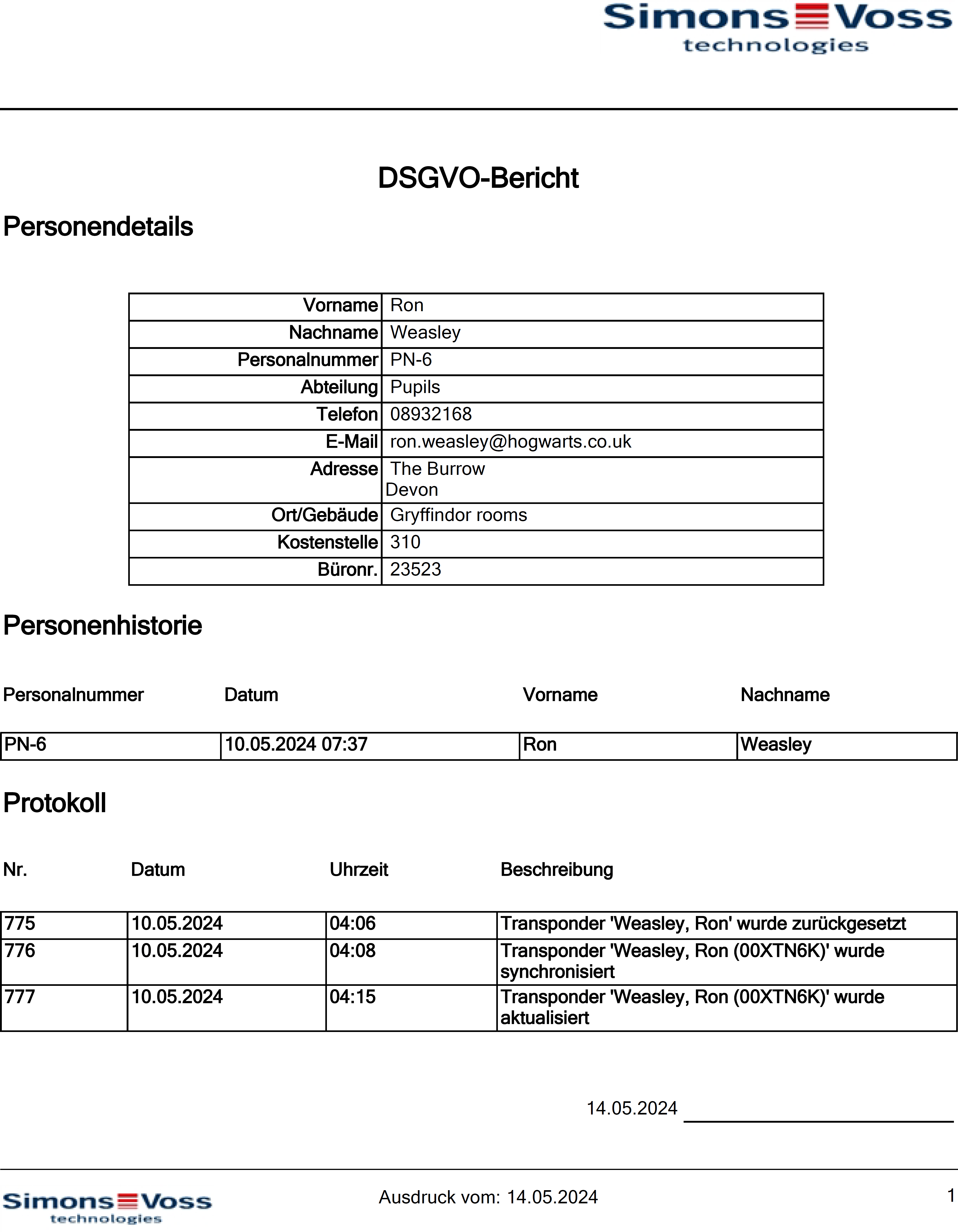 - Gegevensbeschermingsrapport wordt als PDF (DIN A4) geëxporteerd.