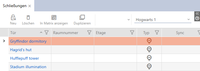 - Alle sluitelementen uit alle sluitsystemen in hetzelfde project worden weergegeven.