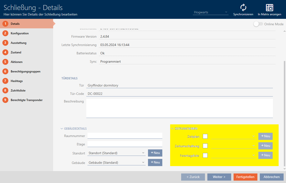 Ibland kanske du ändå redan har skapat lås och bestämmer dig först senare för att styra behörigheterna tidsmässigt. I detta fall lägger du helt enkelt till låsen till dina tidsscheman i efterhand.