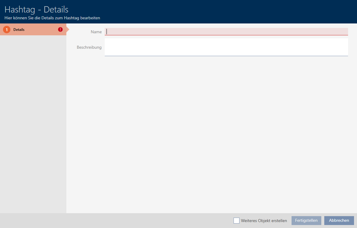 . - Fönstret för att skapa en ny hashtagg öppnas.
