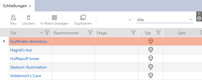 - Alla lås i alla låssystem i samma projekt visas.