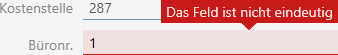 Först efter att du har fyllt i fältet kan du avsluta inmatningen. Det kan alltså finnas tomma värden i fält som markerats som obligatoriska i efterhand. | Fält som gjorts unika i efterhand behandlas som nya unika fält. Personer som redan är tillagda i systemet kan ha samma information i samma fält eftersom fältet tidigare inte var markerat som unikt. När du öppnar en sådan person och klickar på knappen kontrollerar AXM Plusom det finns unika värden i alla unika fält. Om så inte är fallet rödmarkeras de berörda fälten: