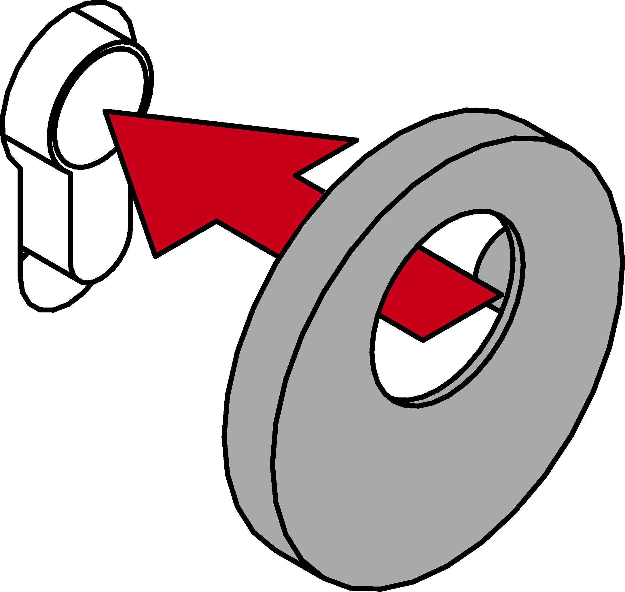 - Houd de knop ingedrukt en draai hem tot de aanslag linksom (evt. meenemer vasthouden).