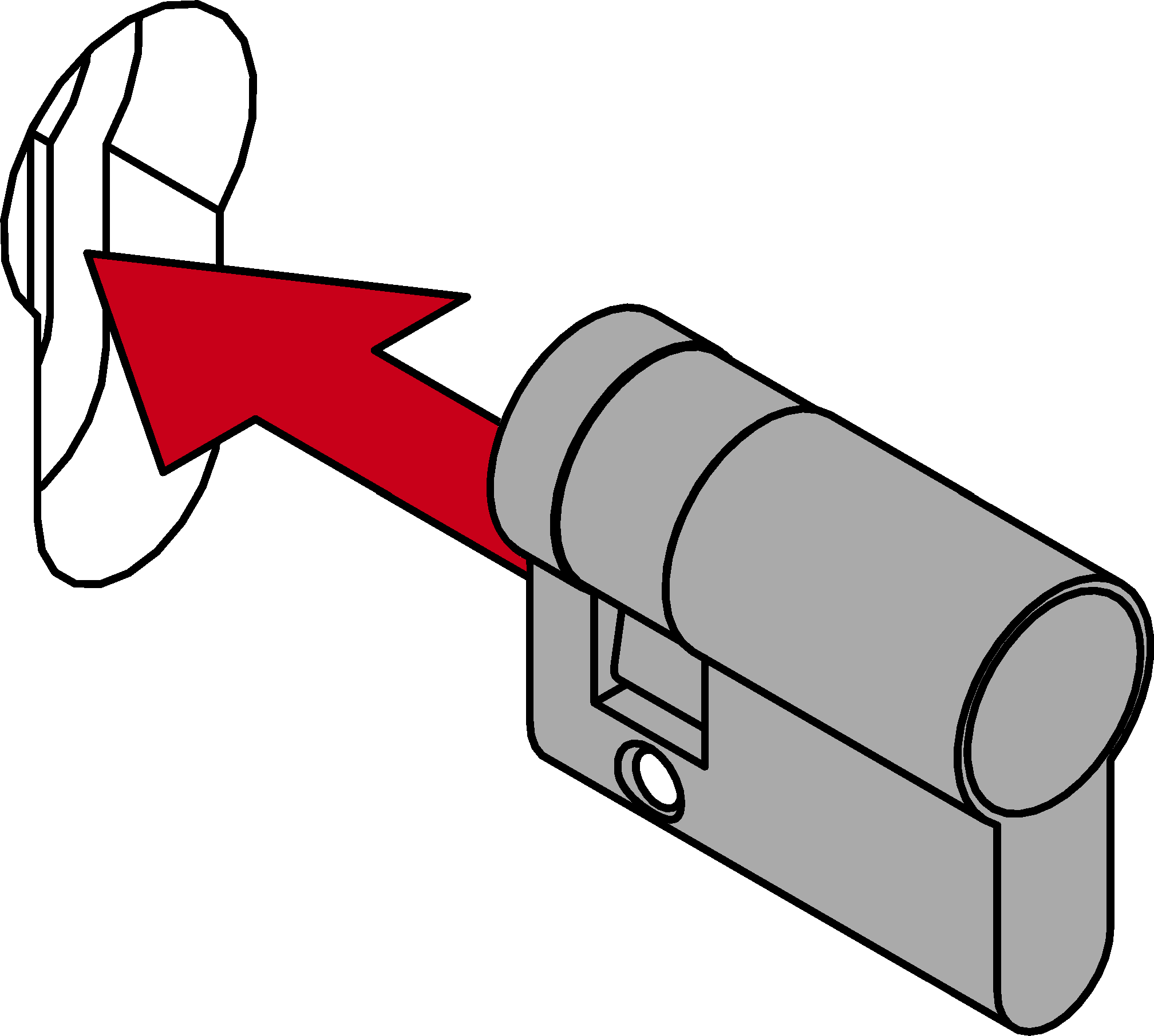 - Steek het cilinderlichaam van binnen door de deur.