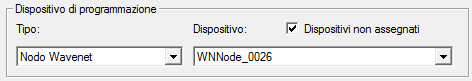 - Nel campo "Dispositivo di programmazione" modificare il tipo di Config Device sul nodo WaveNet affinché le attività di programmazione siano eseguite tramite la rete