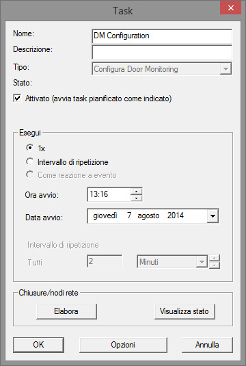 - Selezionare il tipo di attività, ad es. "Configurazione DoorMonitoring"