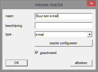 - E-mail: verzenden van een voorgedefinieerde e-mail aan een groep ontvangers
