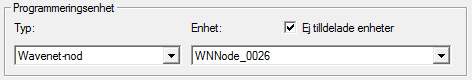 - I området ”Programmeringsenhet” ska du ändra typen från Config Device till Wave Net-nod, så att programmeringsuppgifter kan genomföras via nätverket.