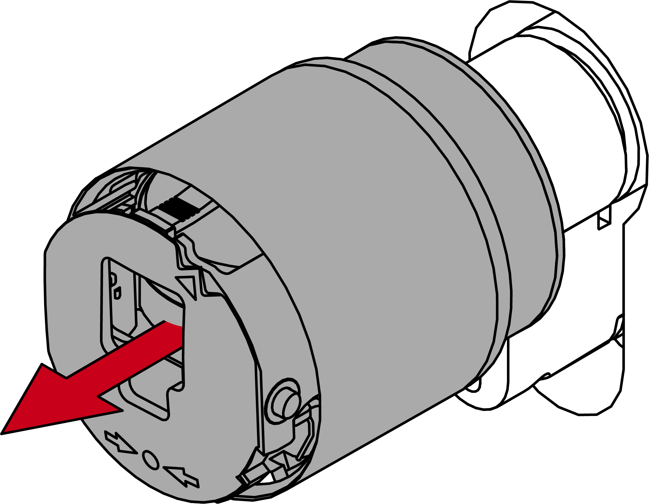 - Zet het speciale gereedschap dusdanig op de knop dat het logo parallel is met de inkeping.