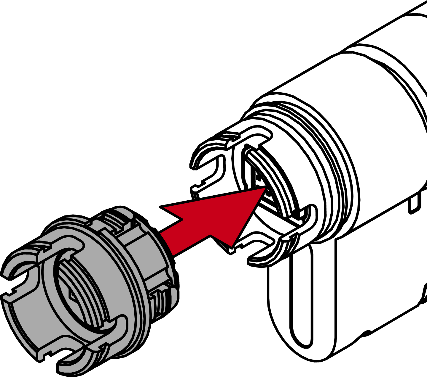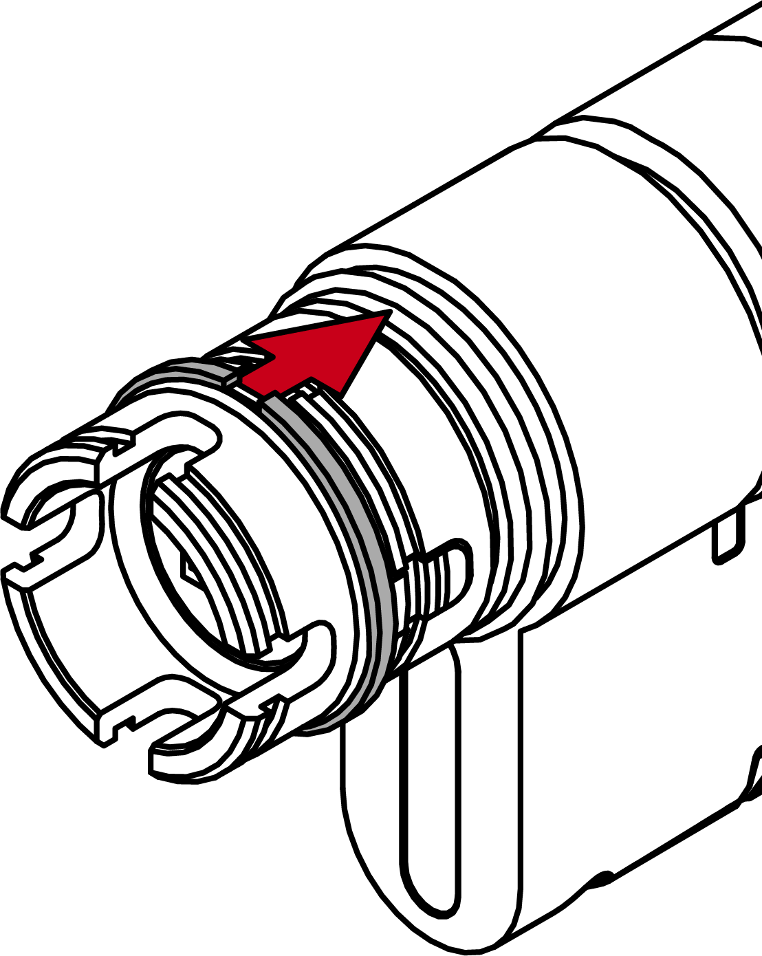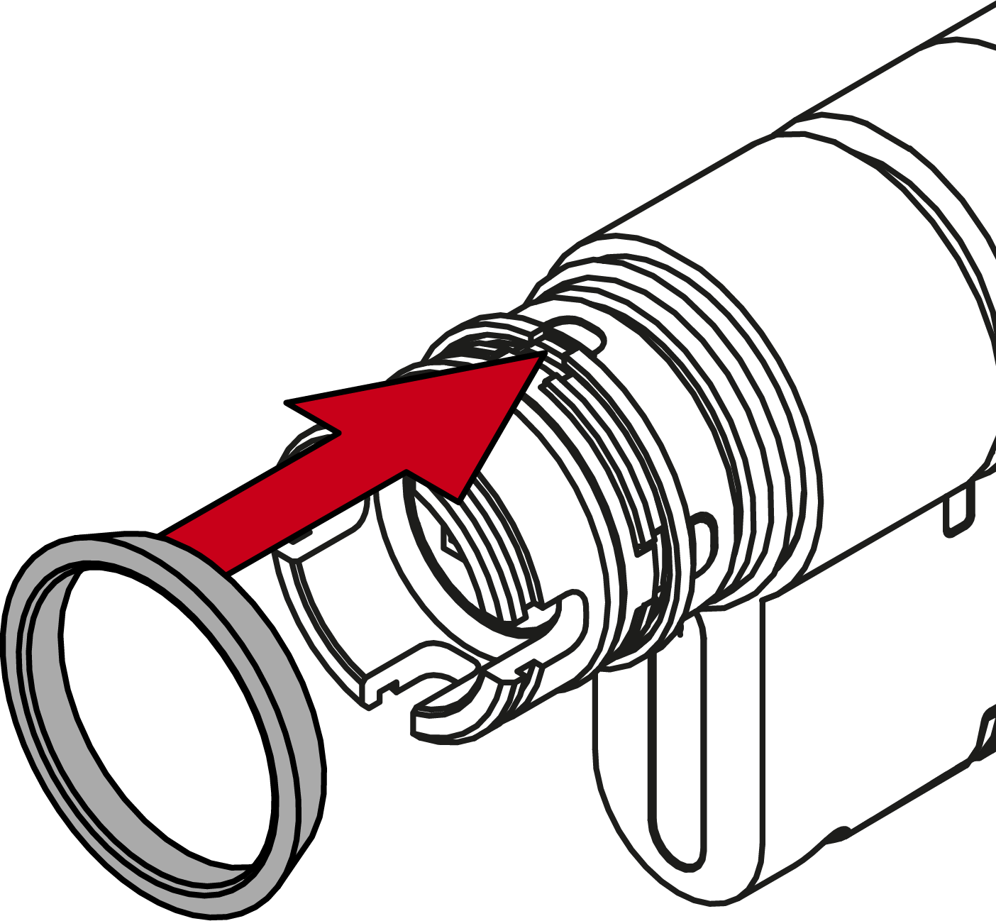 - Schuif de borgring met de kleinere diameter in de richting van de meenemer tot de aanslag op de knophouder.