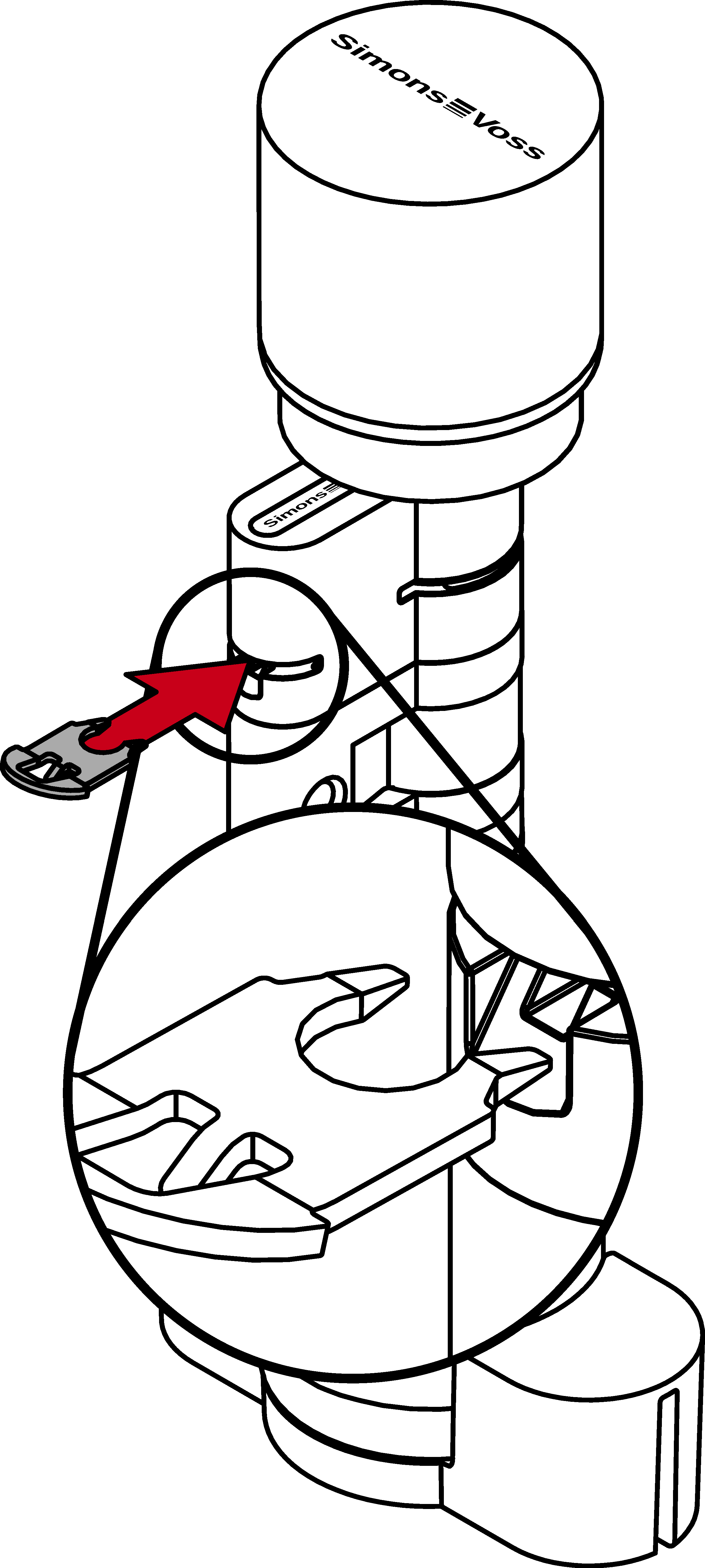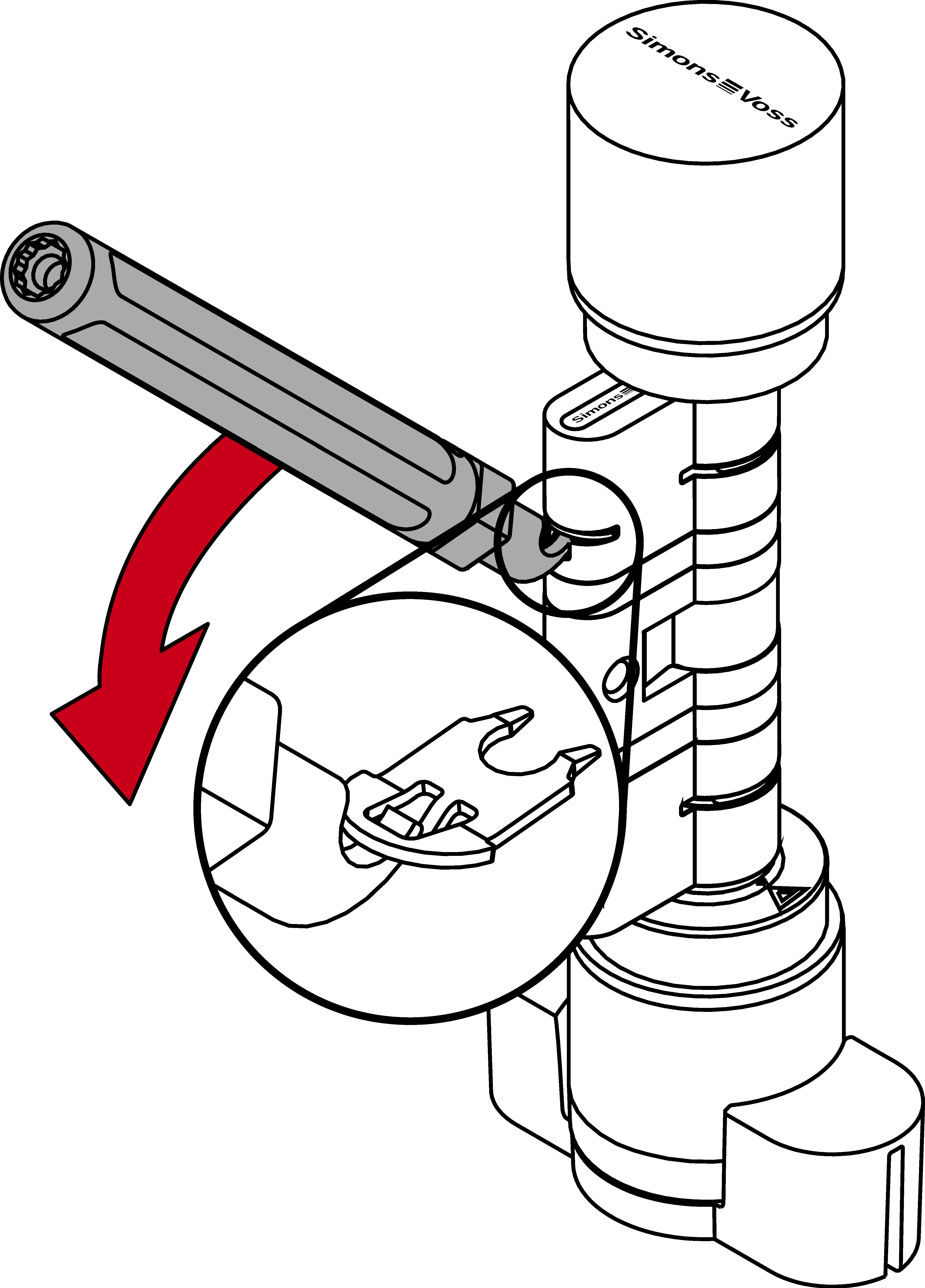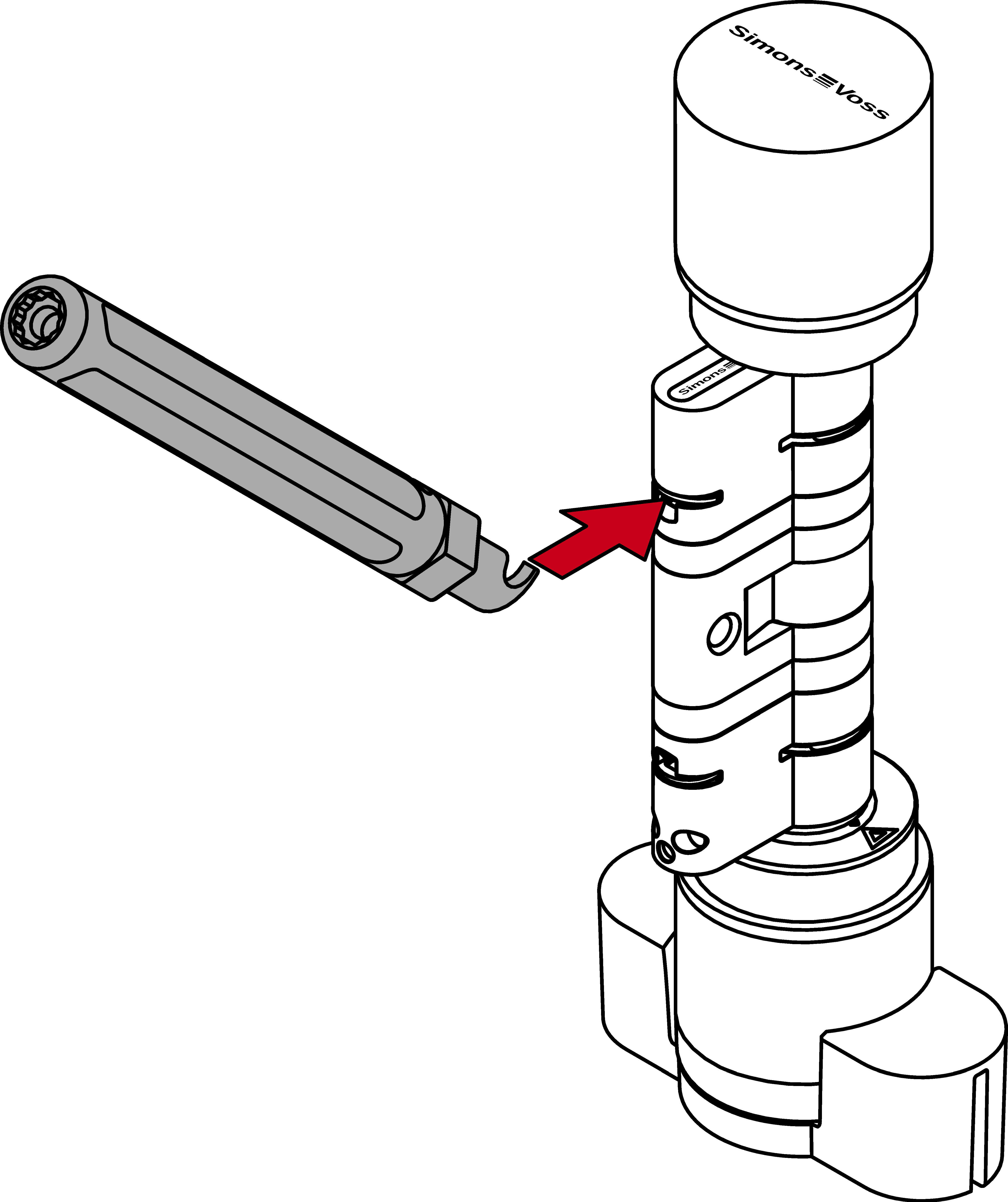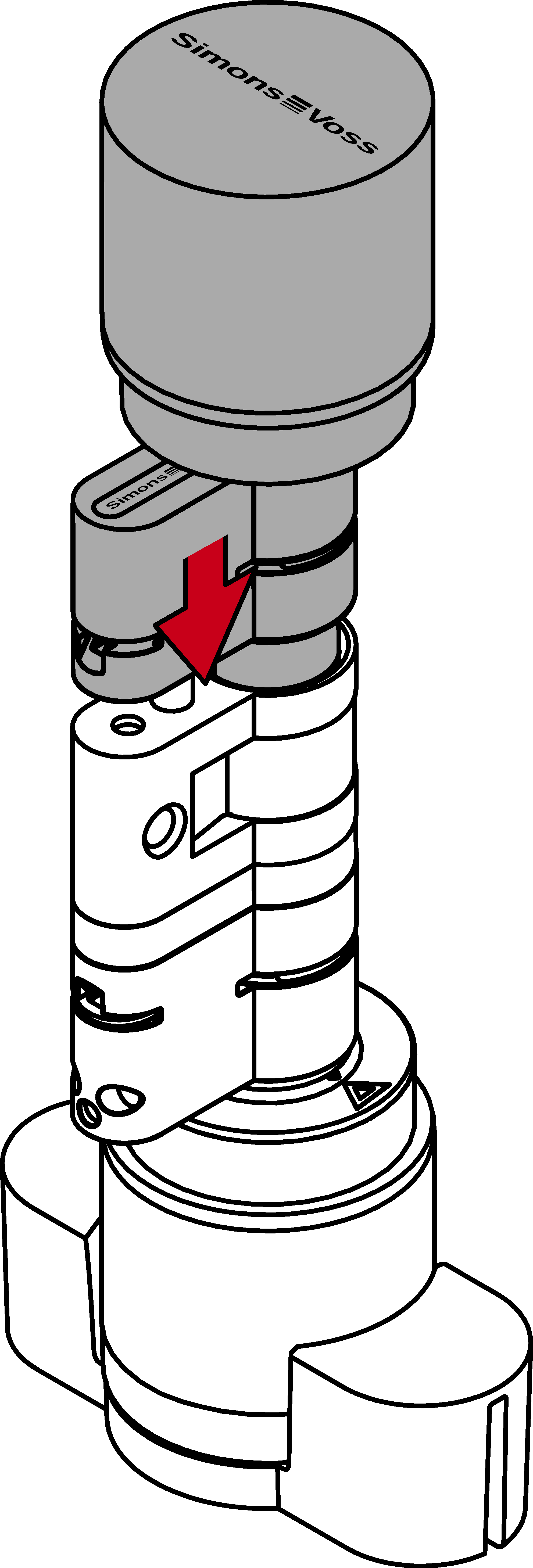 - Plaats de cilinder AX in het montagegereedschap voor de knop.