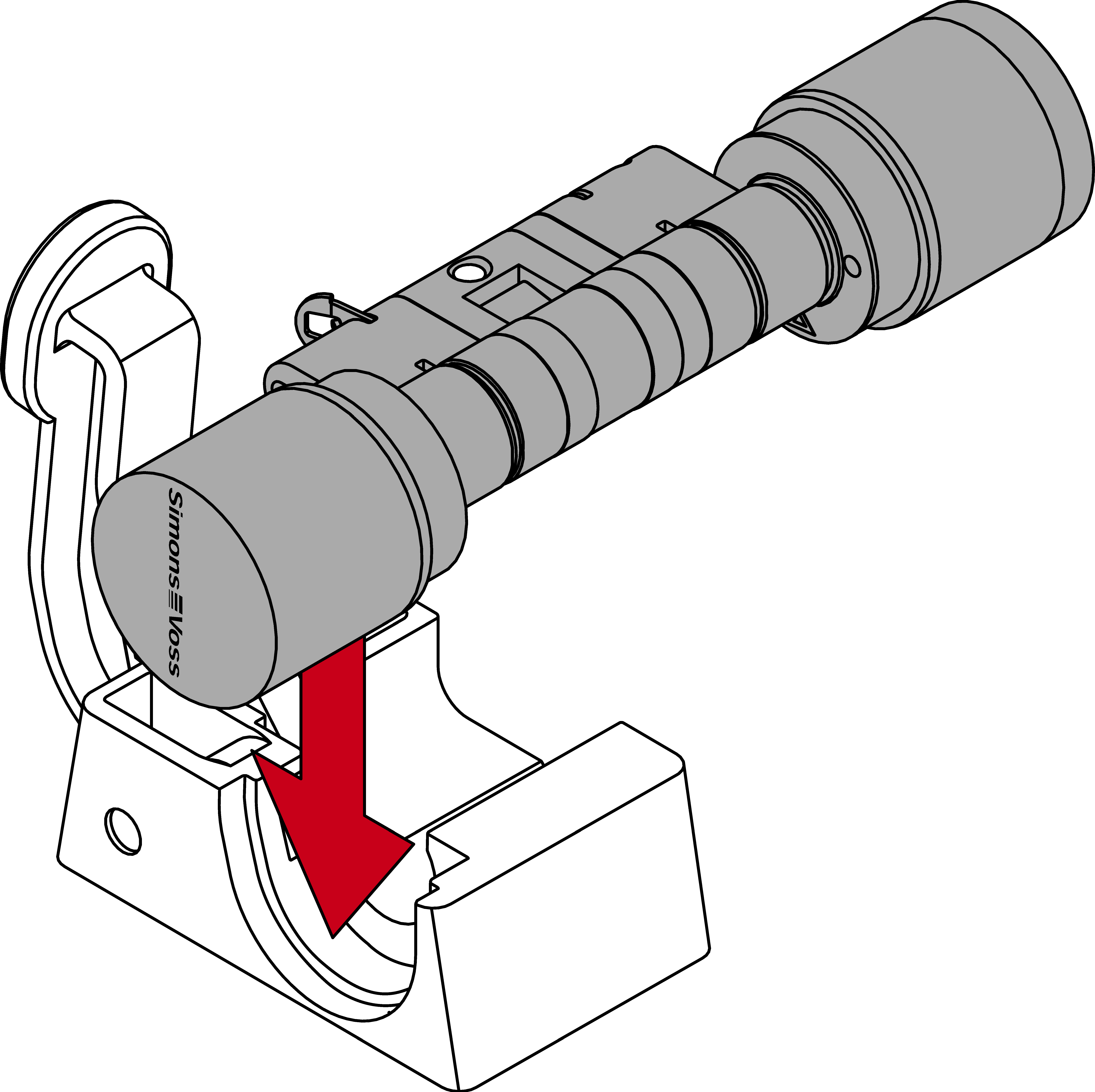 - Druk de hendel van het klemblok naar de bodemplaat toe tot de klem weer volledig in de profielcilinder zit.