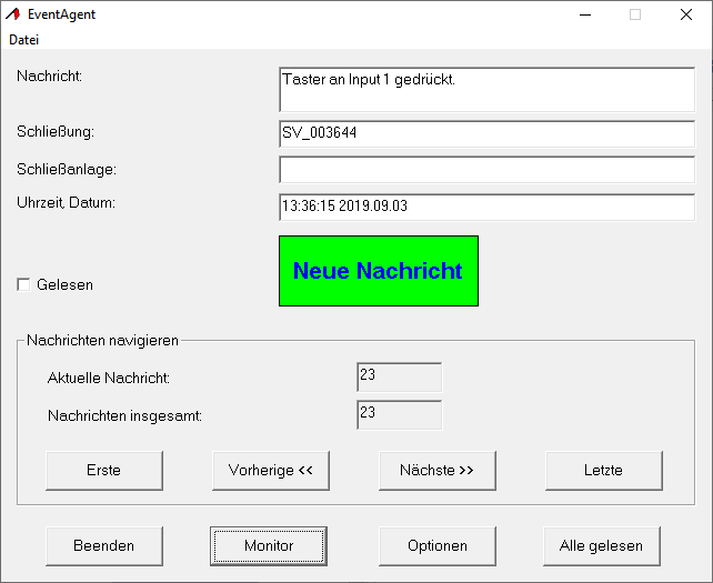 Der EventAgent zeigt Ihnen automatisch die neueste Netzwerknachricht an. Wenn Sie die Netzwerknachricht gelesen haben, dann markieren Sie die Netzwerknachricht mit der Checkbox Gelesen als gelesen.