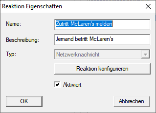 Netzwerknachrichten werden durch den Ereignismanager der LSM versendet, wenn Sie in der Reaktion im Dropdown-Menü den Eintrag Netzwerknachricht ausgewählt haben.