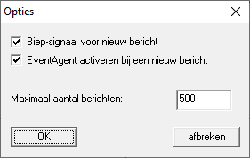 Klik op de button Opties om de opties voor de EventAgent weer te geven.