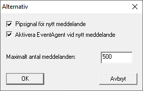 Klicka på knappen Alternativ för att visa alternativ i EventAgent.