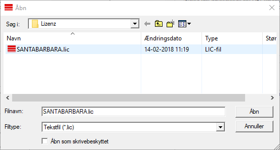 - Vælg LIC-filen.