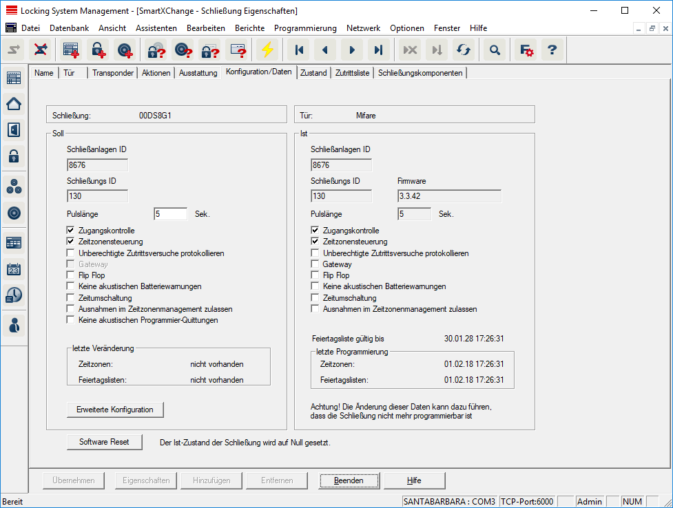 - Die linke Seite zeigt den Soll-Zustand der Schließung - also der in der LSM Software konfigurierte und gewollte Zustand.