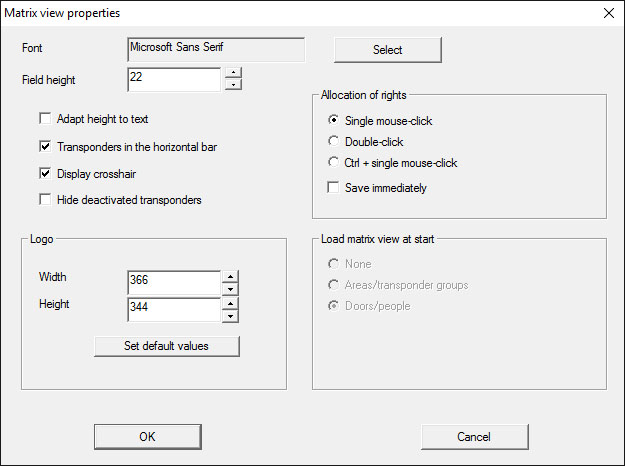 You can use the menu bar to adjust settings on the standard view at View/Matrix view properties.