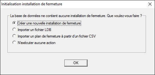 - Sélectionnez « Créer une nouvelle installation de fermeture » afin de créer une nouvelle installation de fermeture. Confirmez par « OK ».