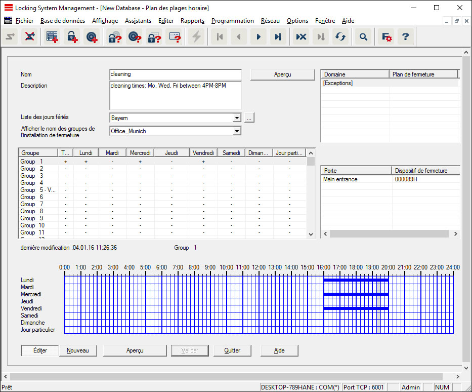 - Cliquez sur le bouton OK, puis sur Beenden (Terminer) pour revenir au menu principal du plan des plages horaires.