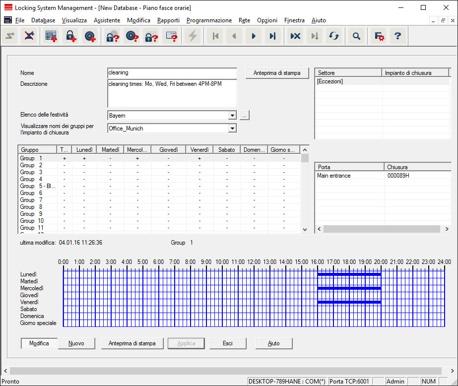 - Selezionate un gruppo nella tabella ed editate il programma settimanale per questo gruppo.