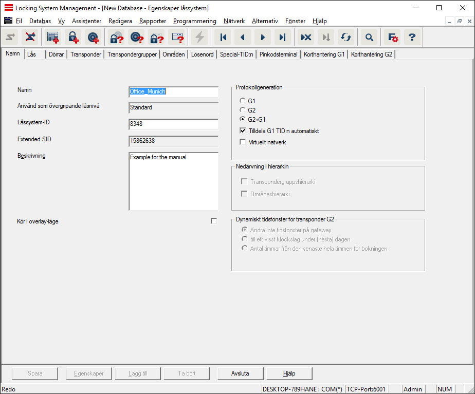 - Låssystemets namn