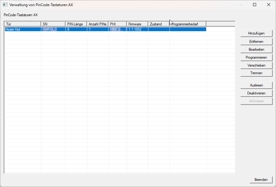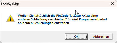 PinCode-knappsats AX kan endast kopplas till redan programmerade AX-lås. Därför visas endast redan programmerade AX-lås från databasen för koppling.