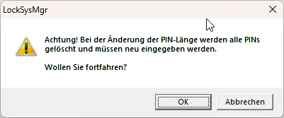 Om du ändrar pinkodslängden raderar LSM automatiskt alla befintliga pinkoder. Dessa måste därefter skapas på nytt.