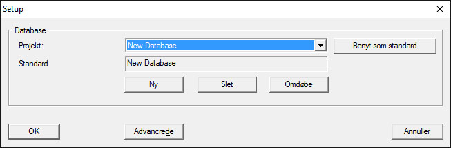 Klik på knappen ”Brug som standard” for automatisk at anvende denne database, når systemet startes op.