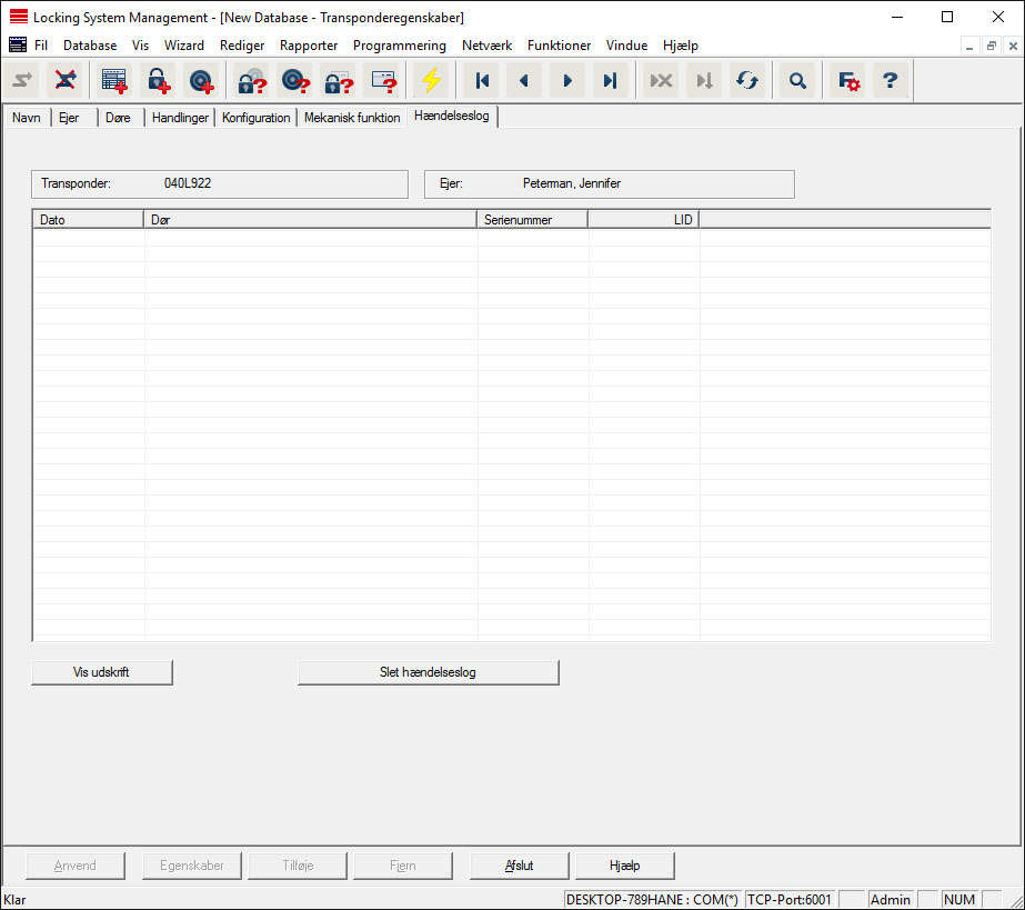 - Adgangslisten oprettes og gemmes automatisk. Den kan nu vises når som helst via fanen "Adgangsliste" i transponderegenskaber.