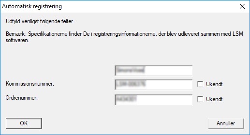 LSM skal registreres. Det gøres ved at oprette en registreringsfil, som sendes til en e-mailadresse til det formål. Et svar med en personlig licensfil genereres automatisk. Med denne licensfil kan LSM registreres med de bestilte moduler.