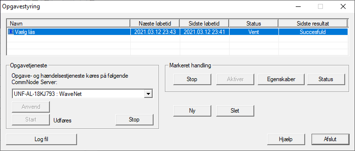 - Sørg for, at den passende CommNode er valgt i området Opgavetjeneste i dropdown-menuen .