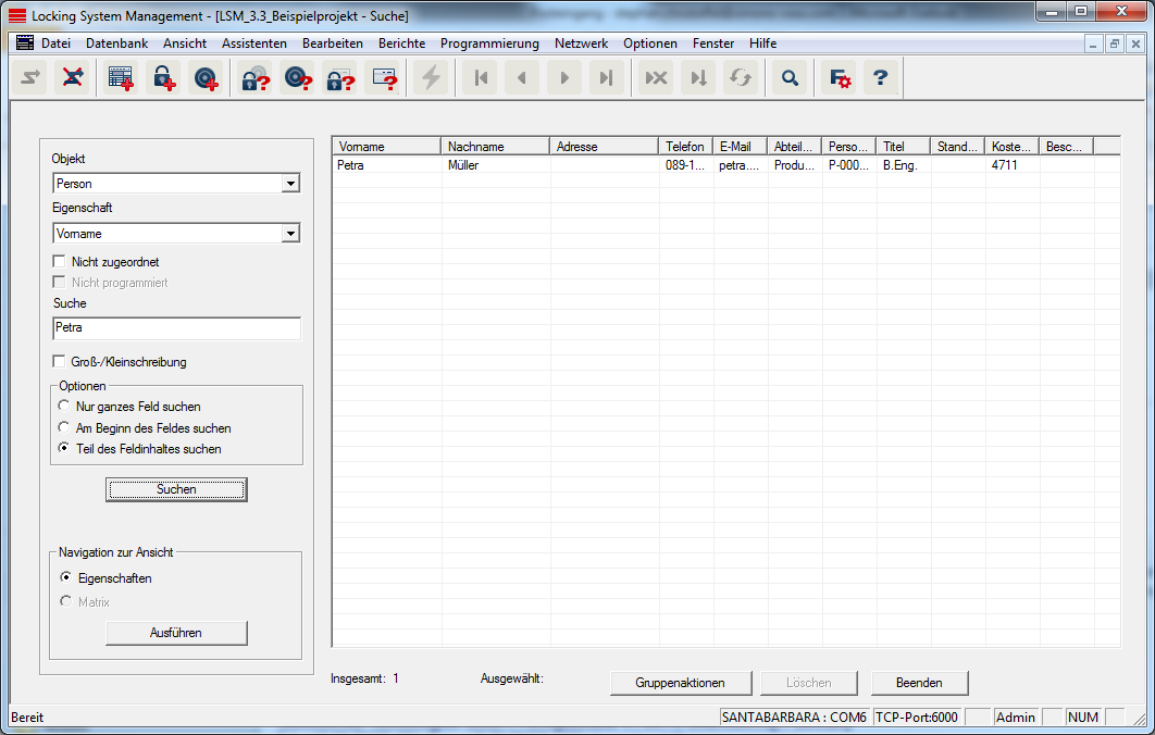 - In der Schließanlage wurden bereits Elemente angelegt, nach denen gesucht werden kann.