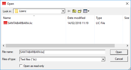 - Click on the Read in licence file button.