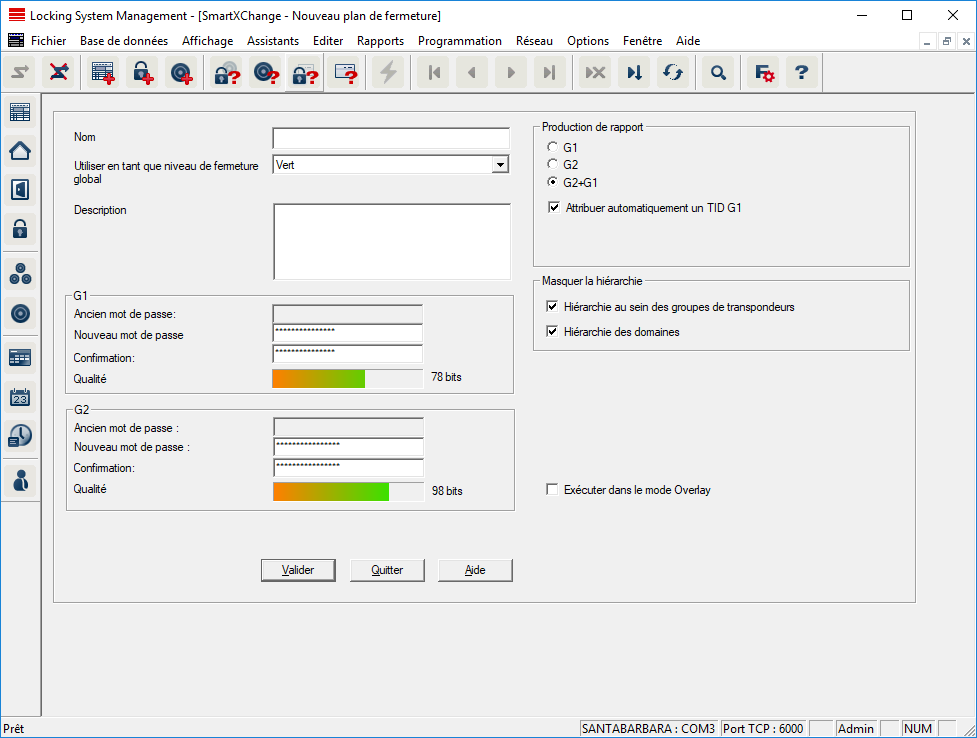 Un niveau de fermeture transversal est créé comme une installation de fermeture, par ex. à l’aide du bouton « Nouvelle installation de fermeture » :