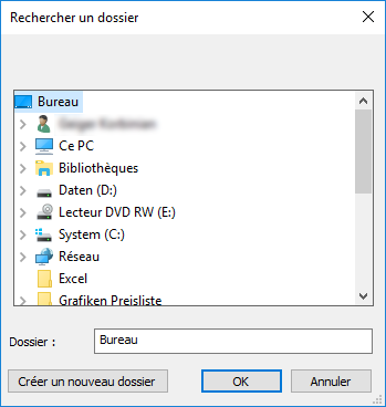 - Entrez le dossier dans lequel les données doivent être sauvegardées.