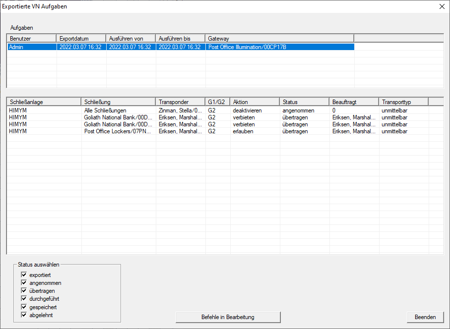 Après l’exportation dans le réseau virtuel, vous pouvez voir les tâches dans une vue d’ensemble :