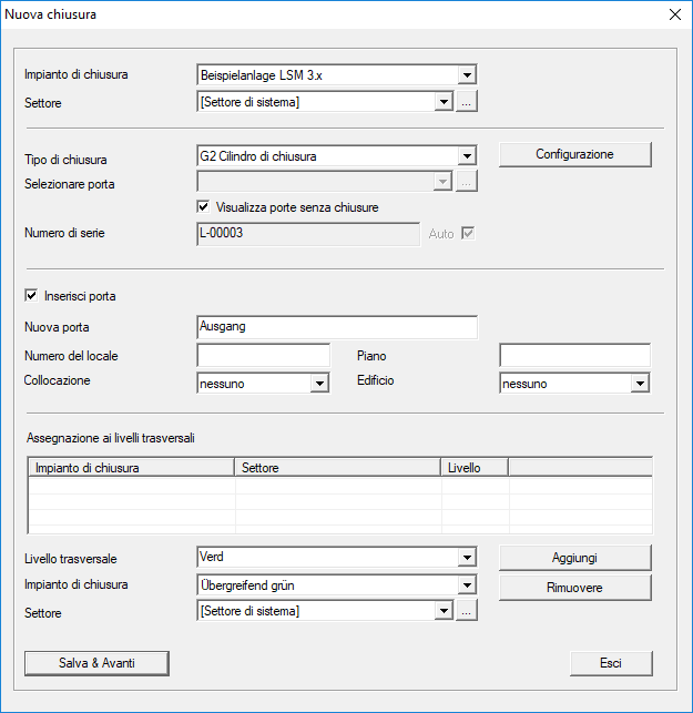 - Con il pulsante "Salva & Avanti" la nuova chiusura viene creata nel piano di chiusura. Scegliere "Termina" per ritornare alla matrice o creare subito un'altra porta.