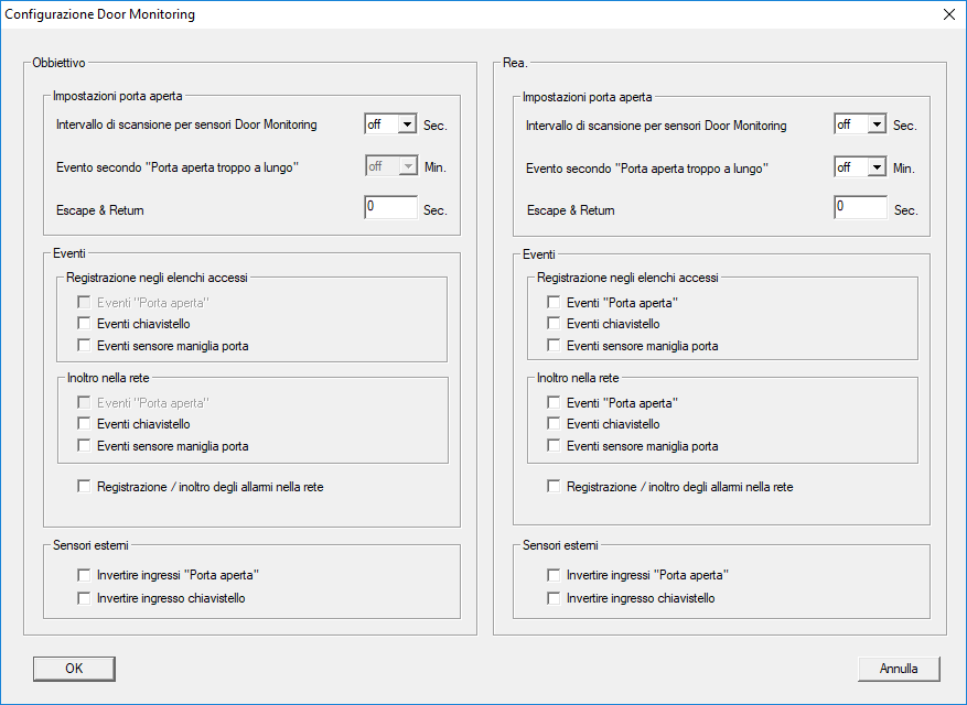 Con il pulsante "Configurazione Monitoring" nella scheda "Configurazione/Dati" della chiusura è possibile configurare le funzioni DoorMonitoring della SmartHandle (vedi anche Messa in funzione del chiusure DoorMonitoring).