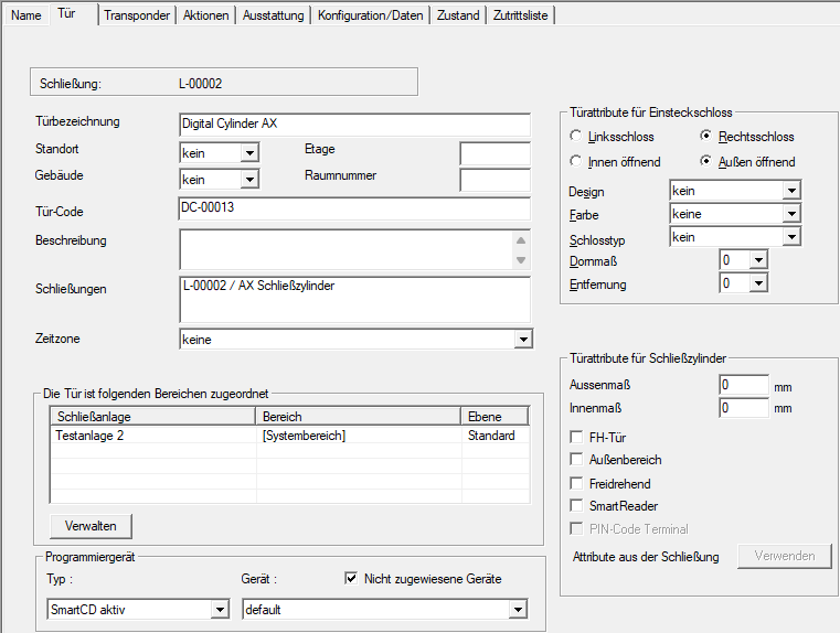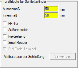 - Immettere nell’area Attributi della porta per cilindro di chiusura nei campi Misura esterna e Dimensione interna le dimensioni del cilindro.