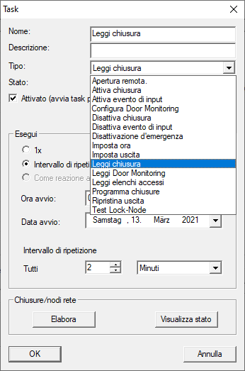 - Lo stato di chiusura delle chiusure impostate viene interrogato automaticamente.
