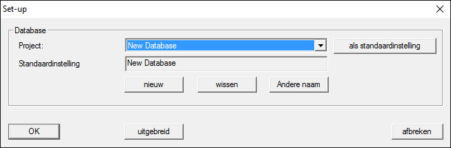 - Gevorderde gebruikers kunnen via de button “Uitgebreid” uitgebreide instellingen als de index van de database of back-ups vastleggen.